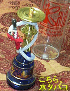 トルコの水タバコ、カッパドキアで買ってきました。 日本円で2000円弱かしら。 実演販売ではなかったので〜、実は、使い方がわからないの〜(--;。 こちらは小型版(30センチくらい)ですが、大きいものになると膝くらいあます。 水タバコが使えるカフェは決められているらしく、大抵みんな、普通のタバコ(日本のより重た目)でしたネ。 喫煙国トルコ! タクシードライバーやポリスマンから、「おひとつどう?」と、普通にタバコをすすめられます‥‥(--;。