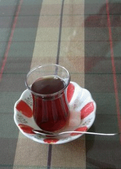 トルコで最も飲まれているのが、このチャイ(Çayはトルコ語です)。 濃く煮出した熱〜い紅茶を、受け皿付きの小さなガラスのコップに入れ、お砂糖をたっぷり入れていただきます。 りんごの香りがするものもあります。 ホテルで、カフェで、民家で、何度かチャイをごちそうになる機会がありました。 トルコの人は、大人も子供も、お酒のようにこれをちびちびやりながら、一日に数時間、ゆっくりおしゃべりタイムを楽しむようです。 2枚目画像は、カフェのメニュー表。 チャイ、50万‥‥!(@0@)! でも、格安。 ホテルだと、300万くらいはしてたから‥‥。