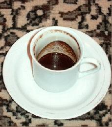 Elinize sağlık!(エリニィゼ サールク) ごちそうさまでした〜! トルコのコーヒー、Türk Kahvesi(チュルク カフヴェスィ)です。 飲み終えると、こーゆー物が底に残ります。 コーヒー占いなるものもメジャーだとか。 コーヒーの粉と砂糖をいっしょに煮立て、そのままカップに注いでしまうらしい‥‥。 沈殿してから飲むわけですが、当然、味は濃い上にこってりと甘く、舌の上でぞろっとします。 当然、おいしくはないです(^^; ちなみに、トルコでNeskafe(ネスカフェ)というと、インスタントコーヒー全般を指すことになります。 そしてこのNeskafeは、Türk Kahvesiより高級品。
