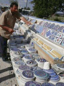 お土産に買ってきた絵皿と、それを買ったお店です。 場所は、キノコ岩の谷で有名なカッパドキア。 ブルーのイズミックタイル模様や、アラビア文字でアッラーと書かれたものなど。 トルコ国内では何度も目にする、最もスタンダードな柄です。 値段は、4枚で1000円(円OK)でした。 テーブルで、鍋敷きとして使ってます(^^v とるこのとりこ http://yuniyuni.nobody.jp/